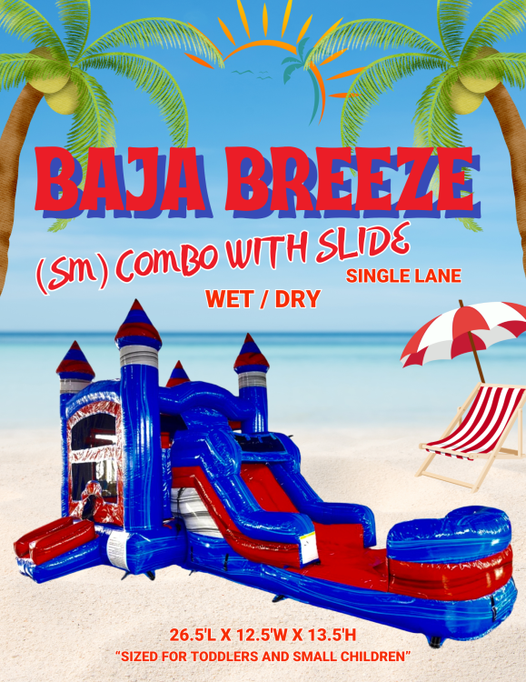 The Baja Breeze brings the best of both worlds with a bounce area and slide built into one exciting unit. Kids can jump, climb, and slide for hours, making it perfect for birthdays and backyard parties.