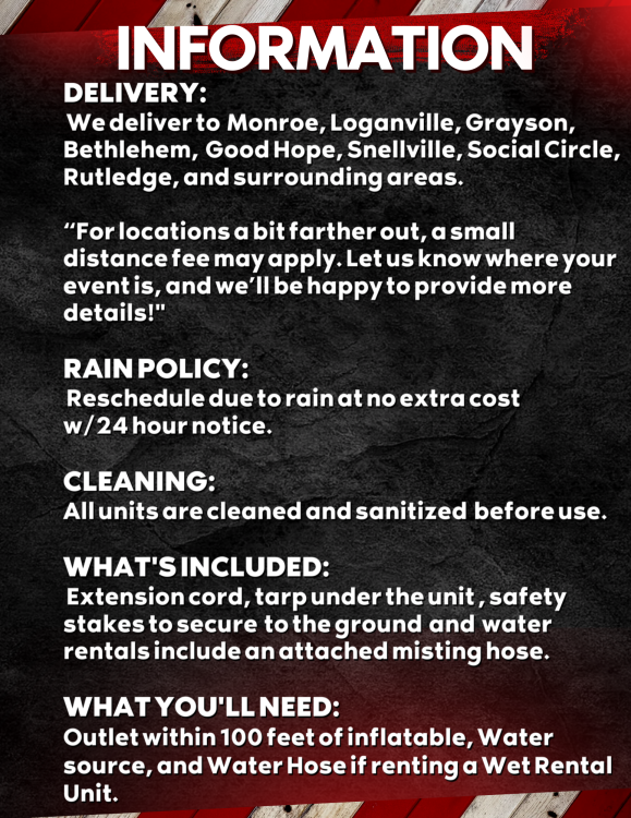 - DELIVERY: We deliver to Monroe, GA, Loganville, GA, Snellville, GA, Winder, GA, Grayson, GA and surrounding areas (delivery fees calculated at checkout).